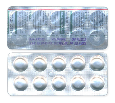 - The usual starting dose of glucobay is 25 mg taken three times daily, with possible titration up to 100 mg three times daily based on tolerance and efficacy.